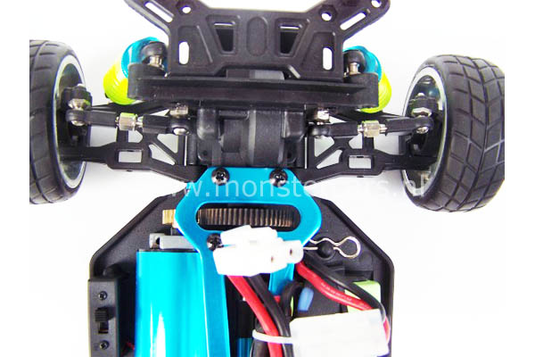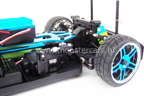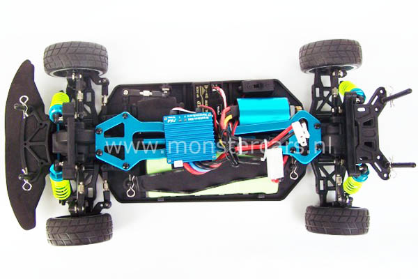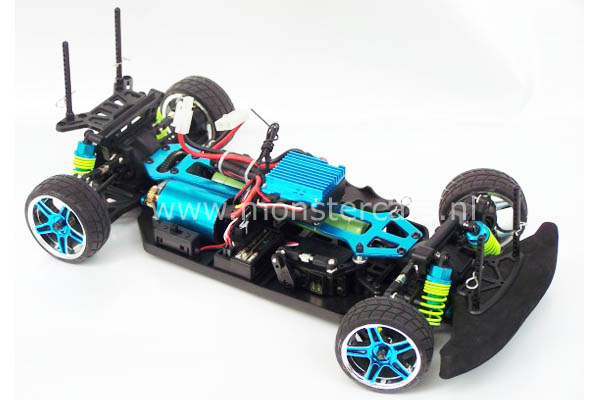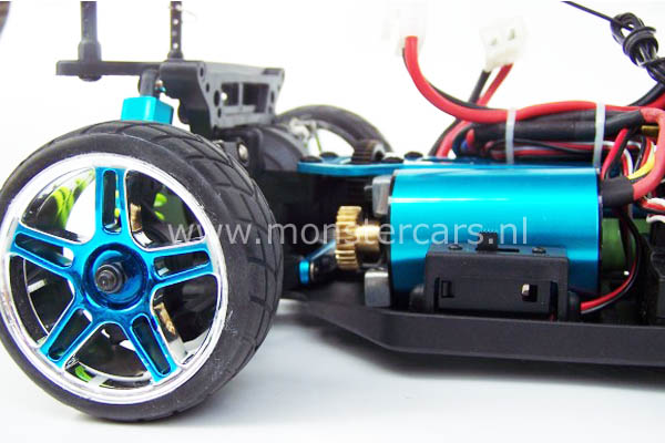 This impressive 1/10 Brushless On Road Car is equipped with four-wheel drive and a brushless motor and electronic speed controller which make the car capable of reaching extreme speeds of up to 60 mph! With this kind of power it makes sense that the car is solid and has impact resistant parts such as fa foam bumper and a body partially made of aluminium. The Brushless Car comes fully assembled and Ready to Run, with the options at the bottom you can create your own set up and choose the type of battery and charger you would like to use. The small tyres have a lot of traction, making this car perfect for track and street races. Included with this car is a stylish 2.4GHz transmitter with a range of over 100 metres! The transmitter also makes it possible to have many people driving at once without any interference. The car can easily be changed into a drift car by switching out the tyres. The car has a durable body, it's partially made of aluminium which means it's capable of withstanding bumps and crashes better than the PVC bodies of other cars. All of the parts in this car are replaceable and always in stock in our store. We also have aluminium upgrades available for this car to make it even more durable. The brushless motor can be hooked up to a variety of batteries ranging from 7.2 – 12 votls NiMH and LiPo. LiPo batteries are more powerful and can unleash the monster in this monster car! The Brushless On Road Car is ready to run and includes a 7.2V 1800mAh battery, charger, 2.4GHz transmitter and 1 year warranty.